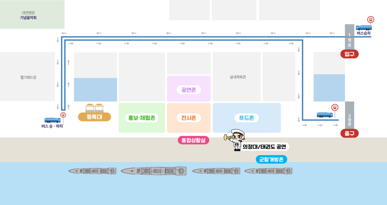 - 장소 : 군악대·홍보대(공연존), 의장대(함정공개행사장 부두)